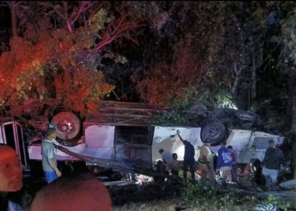El hecho involucró un autobús lleno de pasajeros que terminó volcado tras el impacto con una yipeta, según los primeros reportes.