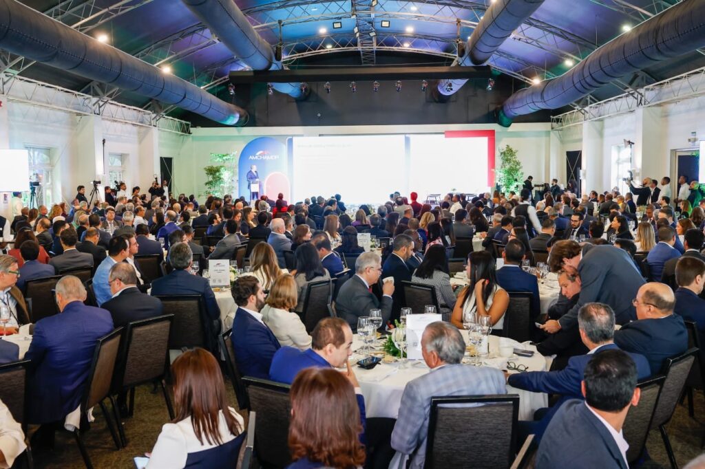 El almuerzo empresarial de la Cámara Americana de Comercio de la República Dominicana (Amchamdr), reúne cada mes a líderes del sector público y privado, quienes analizan los principales temas de interés socio productivo con el objetivo de generar propuestas y discusiones que fortalezcan la institucionalidad y las políticas de desarrollo económico del país.