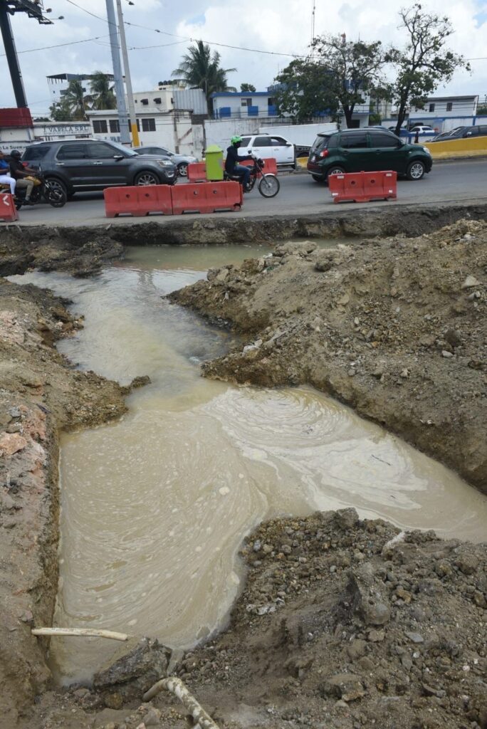 En tanto que una brigada de la CAASD fue enviada por el ingeniero Fellito Suberví a corregir una avería en una línea de 8 pulgadas en las proximidades del Kilómetro 9 de la Autopista Juan Pablo Duarte frente al destacamento de la Policía Nacional.