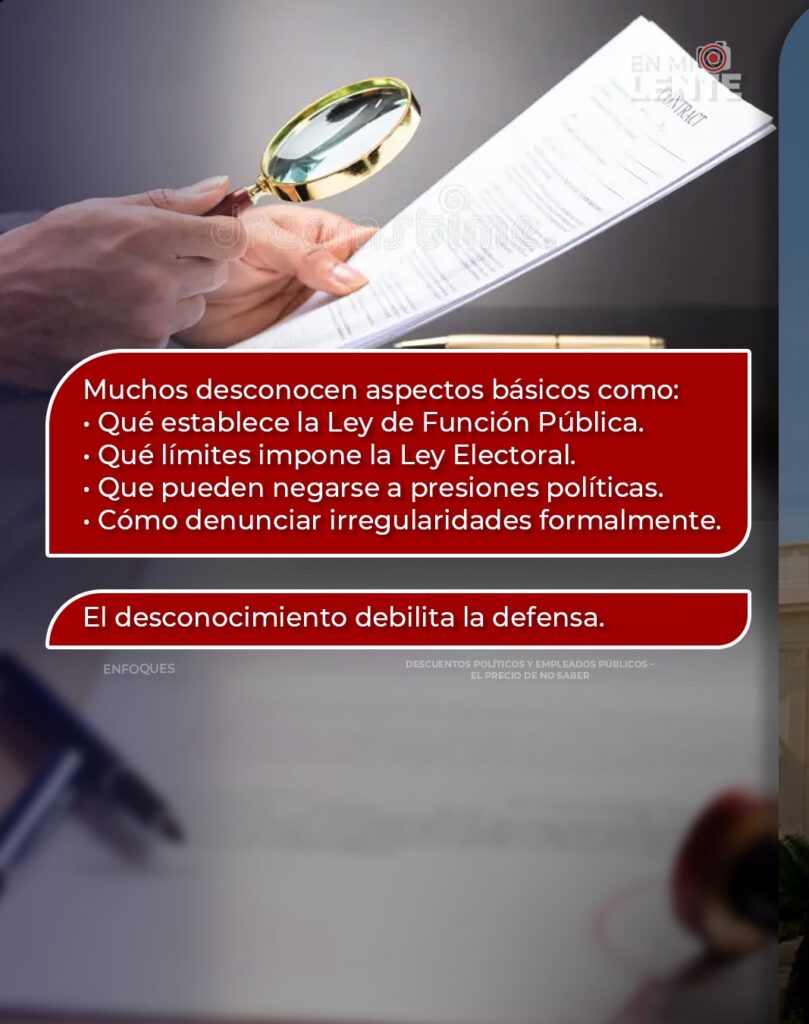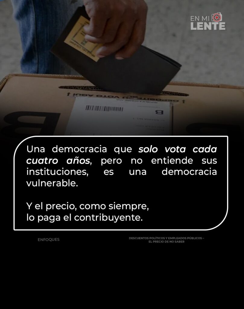 Cuando un empleado no sabe que un descuento con fines políticos puede ser ilegal o que tiene derecho a negarse sin represalias, el abuso encuentra terreno fértil. Y cuando la ciudadanía no comprende la diferencia entre Estado y partido, termina normalizando lo que debería escandalizarla.