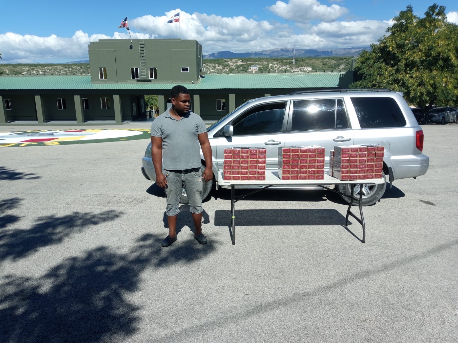 En un segundo operativo, realizado en el Puesto de Chequeo Florida, ERD, fueron decomisados por soldados del ERD otros cien (100) paquetes de cigarrillos marca Capital, equivalentes a veinte mil (20,000) unidades, los cuales estaban escondidos en una jeepeta marca Honda Pilot, color gris, placa G239285, conducida por Gabriel Cuevas Pérez.