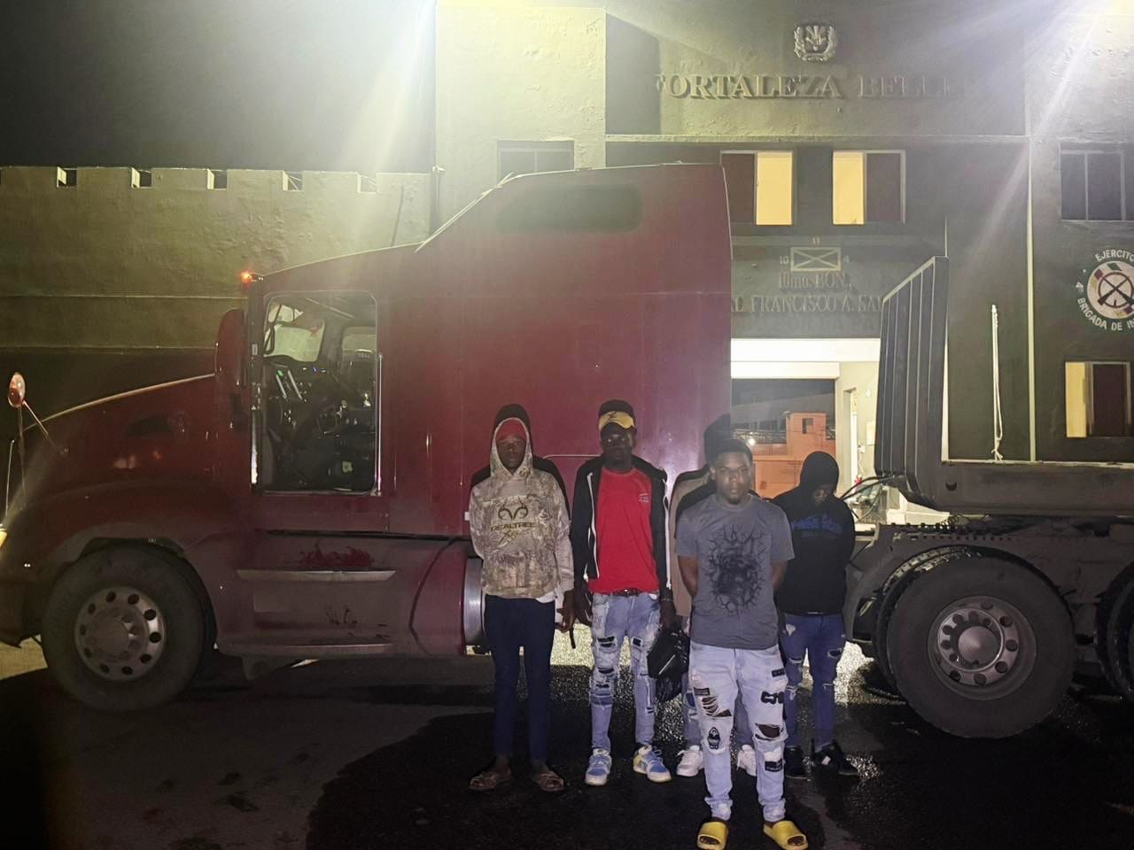 Durante la inspección vehicular, fueron encontrados cuatro (04) nacionales haitianos, todos de sexo masculino y con estatus migratorio irregular, en la parte trasera del cabezote de la patana.