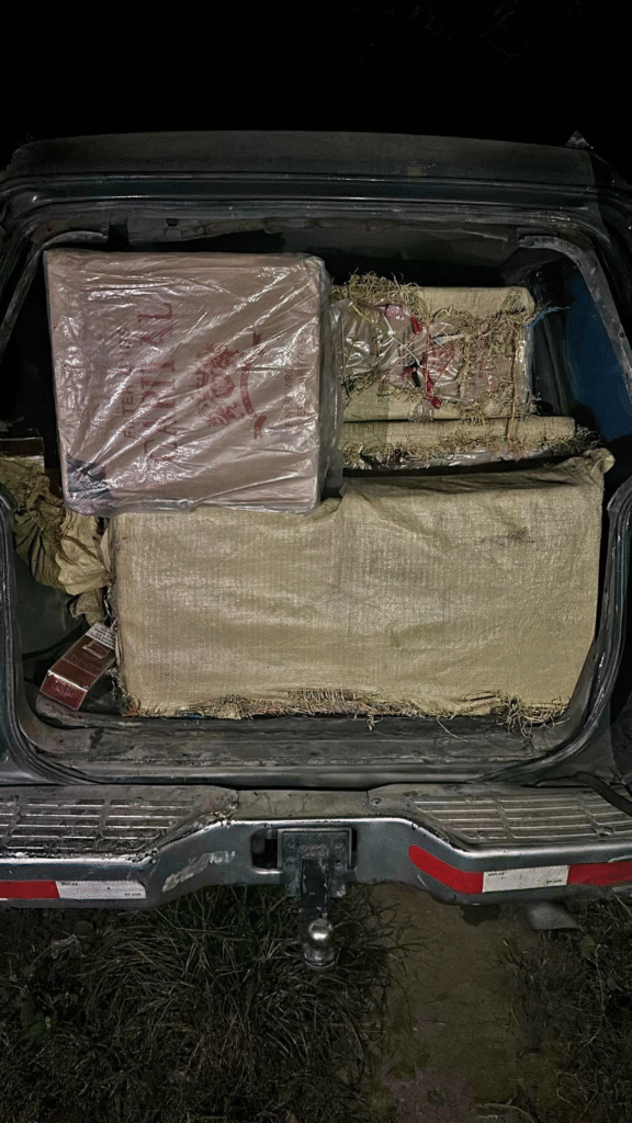 San Juan de la Maguana, R.D. Durante una persecución registrada en la zona fronteriza del municipio Comendador, provincia Elías Piña, soldados del Ejército de República Dominicana, ocuparon un vehículo con un cargamento de 240,000 cigarrillos de contrabando.