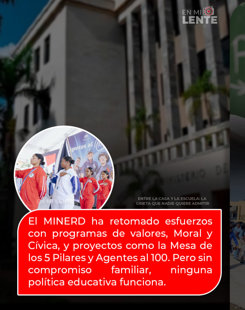 Hay que reconocer los esfuerzos desde el Ministerio de Educación en reforzar la formación en valores en las escuelas, retornando al currículum educativo la materia Moral y Cívica, con acciones como la Mesa de los 5 Pilares o Agentes al 100, ejecutorias que buscan trabajar en diferentes vertientes y la integración de todos.