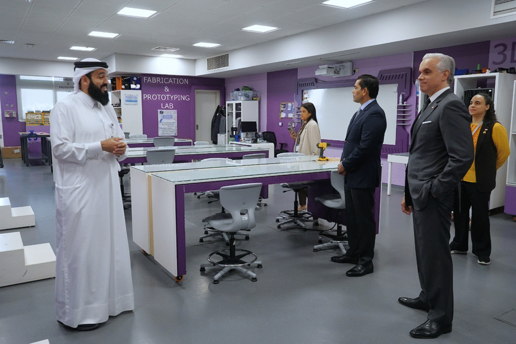 La visita incluyó también un recorrido por la Qatar Science and Technology Secondary School for Boys (QSTSS), una institución de excelencia orientada a STEM. Allí conoció sus laboratorios, modelos pedagógicos basados en investigación y proyectos estudiantiles de alta especialización, además de sostener un intercambio con su equipo directivo.