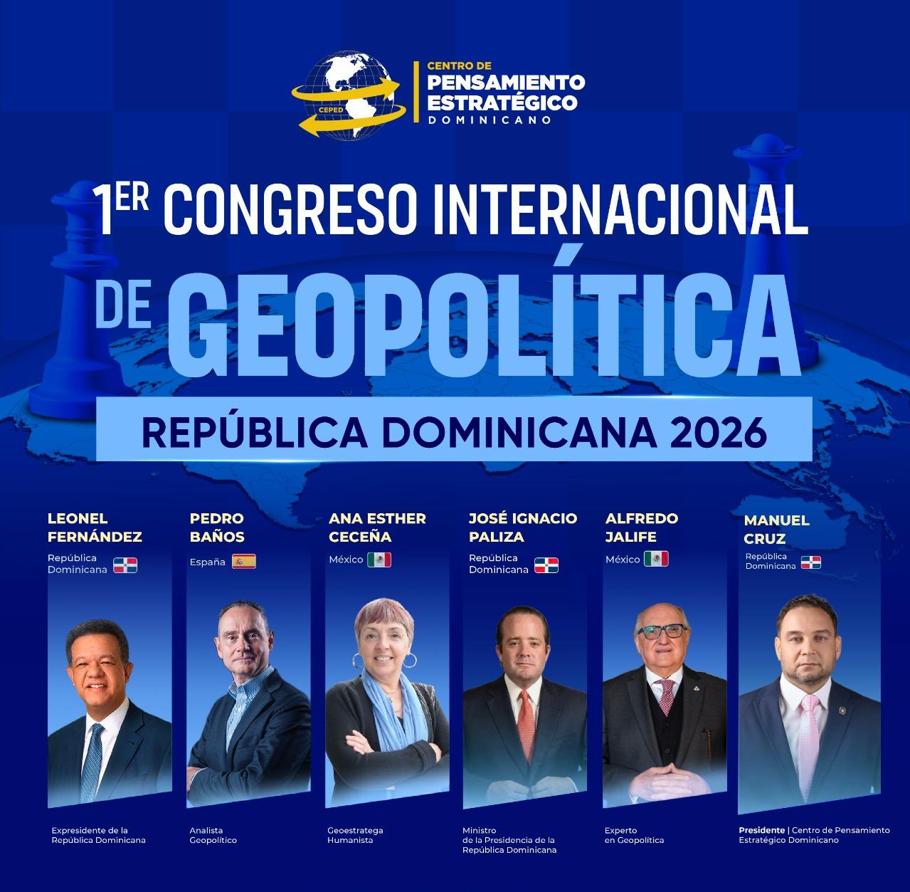 Desde México, expondrán, la humanista y geoestratega, Ana Esther Ceceña y el experto en geopolítica, Alfredo Jalife. Desde España, el analista geopolítico, Pedro Baños, y por la República Dominicana tendrá una intervención especial, el ministro de la Presidencia, José Ignacio Paliza, al cierre del congreso, el expresidente Leonel Fernández, ofrecerá una conferencia magistral.