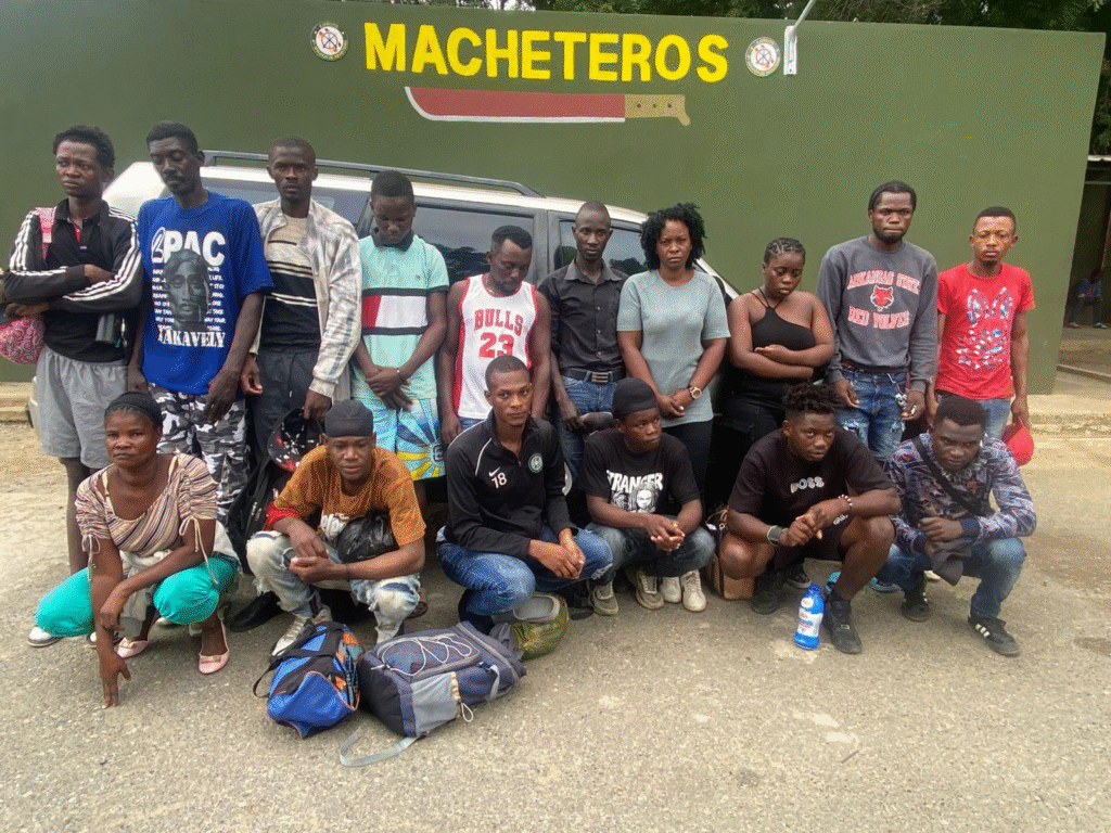 En el interior del vehículo fueron encontrados trece (13) hombres y tres (03) mujeres, todos de nacionalidad haitiana y sin documentación legal que ampare su permanencia en el país.