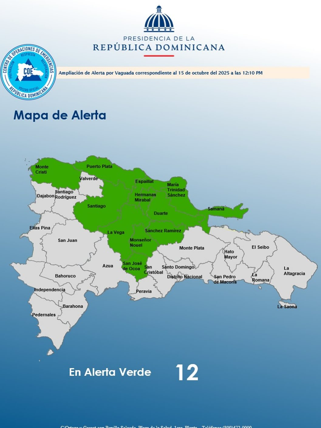 Santo Domingo, R. D. – El Instituto Dominicano de Meteorología (Indomet) informó que las lluvias continuarán este sábado, debido a la incidencia de una vaguada asociada a un sistema frontal, casi estacionario sobre la porción central de Cuba, que mantiene condiciones favorables para la ocurrencia de nublados, acompañados de aguaceros fuertes en ocasiones, tronadas y […]